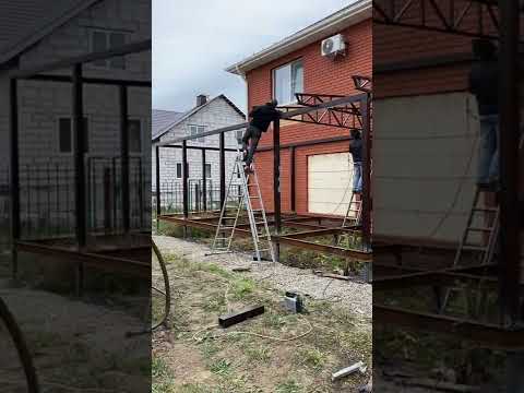 Навесы из поликарбоната Спецкаркас | Приступили к сборке очередного навеса из поликарбоната 8,5х12,5